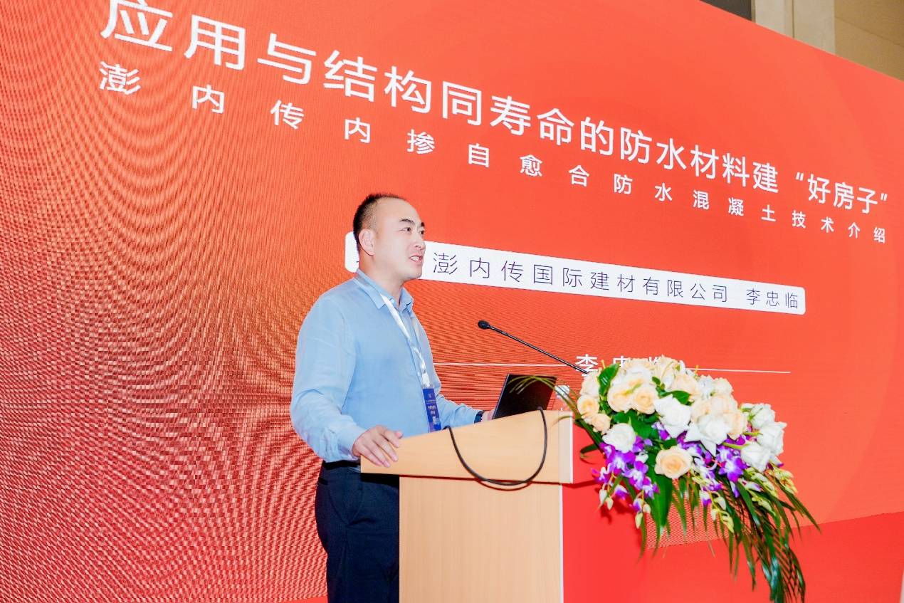 北京澎內(nèi)傳國際建材有限公司市場總監(jiān)李忠臨以《與結(jié)構(gòu)同壽命防水材料助力建造“好房子”》為題作了專題報告,首先總結(jié)分析了當(dāng)前建筑物滲漏的主要原因,然后介紹了澎內(nèi)傳防水系統(tǒng)的機(jī)理、性能與技術(shù)特點,可從根本上解決滲漏問題,最后與大家分享了澎內(nèi)傳結(jié)晶自愈合防水混凝土在工程中的應(yīng)用情況。